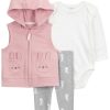 Super fofinho e delicado, o Conjunto longo bebê 3 peças capuz com coelho interativo multicor | Carter’s é perfeito para deixar a sua neném ainda mais lindinha. Feito de algodão, o conjunto pode ser usado com outras peças, tornando as possibilidades de lookinhos infinitas. Conta com 1 body, 1 colete e 1 calça, super lindinhos. Conjunto perfeito para deixar a sua baby super confortável para descobrir o mundinho. Aproveite e invista!
