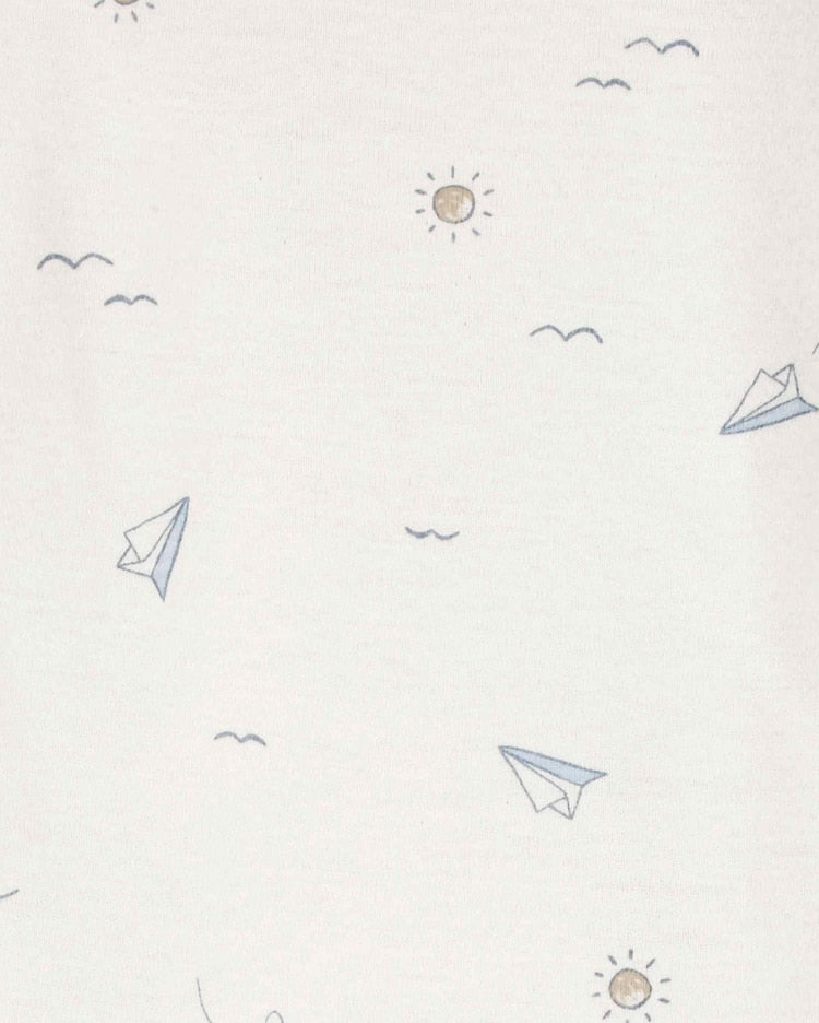 Estampa de listras, avião de papel e pandinha