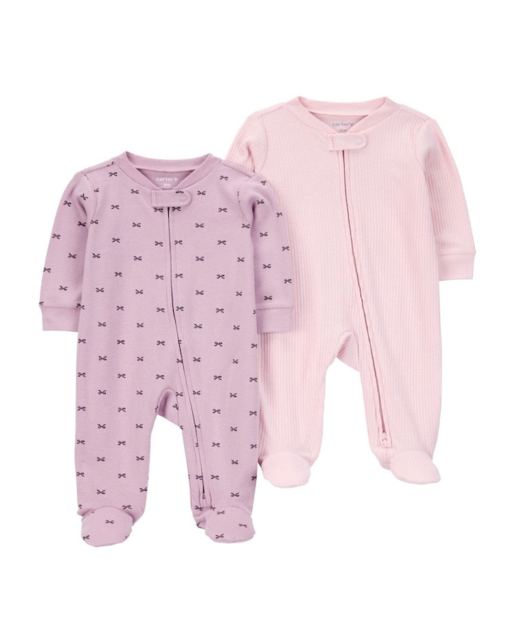 Kit macacão bebê 2 peças com pezinho canelado laço multicor | Carter’s