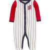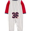 O Macacão bebê basebol listrado branco | Carter’s é confeccionado em material macio e aconchegante, com fechamento por botões, mangas longas, gola redonda, pezinhos e estampa listrada e de basebol. O modelinho esbanja fofura, além de ser ideal para todos os momentos. Invista, o seu baby merece!