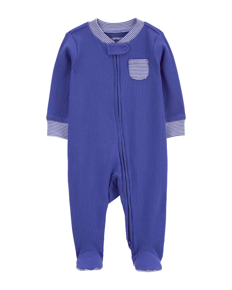 O Macacão bebê canelado com bolso azul | Carter’s é confeccionado em malha canelada e aconchegante, com fechamento por zíper inverso, mangas longas, martingale, gola redonda, pezinhos. O modelinho esbanja fofura, além de ser ideal para todos os momentos. Invista, o seu baby merece!