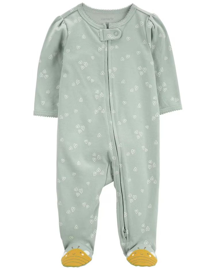 O Macacão bebê mini corações verde | Carter’s é confeccionado em material macio e aconchegante, com zíper frontal, mangas longas, gola redonda e estampa de mini corações. É ideal para todos os momentos! O modelo esbanja fofura e delicadeza, invista, sua baby merece.