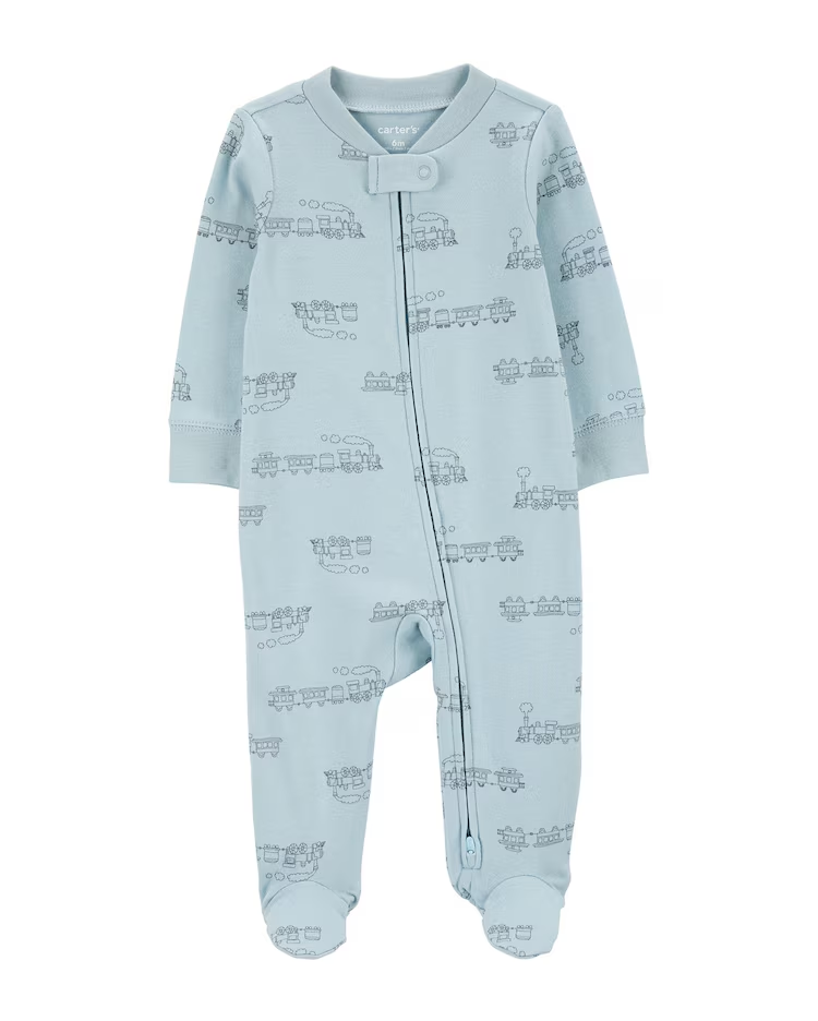 Alie fofura e conforto para sua baby com o Macacão bebê trem azul | Carter’s. Feito de algodão, o macacão é perfeito para ser usado em dias frios ou com clima amenos, possui fechamento por zíper inverso, martingale para proteger seus dedinhos, com pezinho e super prático. Ela ficará ainda mais linda com essa estampa de trem. Aposte!